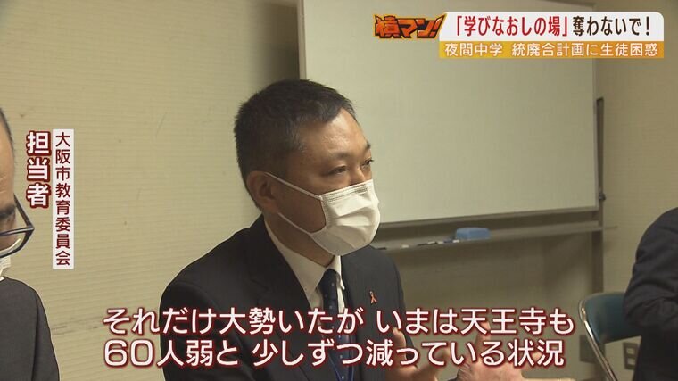 長年、日本に住みながら読み書きができない人や、失われた時間を取り戻そうとする人たちの行き場がなくなる可能性もある大阪市の統廃合計画。今年2月、生徒らは大阪市に説明を求めました。