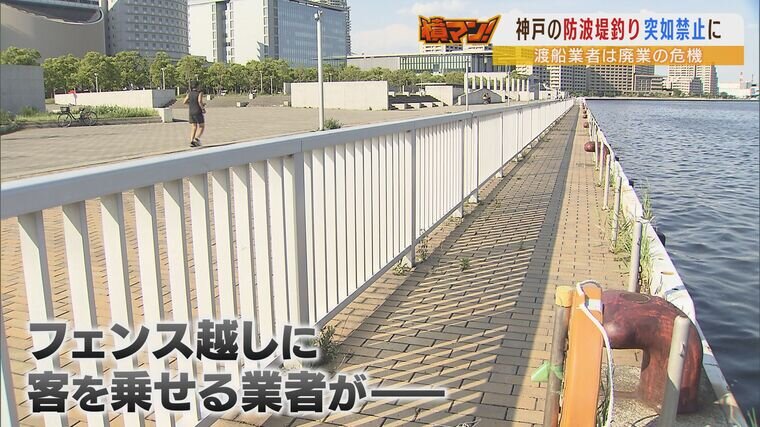 ほとんどの渡船業者は、決められた場所で客を船に乗せるなどマナーを守ってきたといいますが、神戸市によると、ある業者がフェンス越しに客を乗せている様子を確認。安全面などを考慮して、全ての渡船業者に対して運航を禁止する措置を取りました。