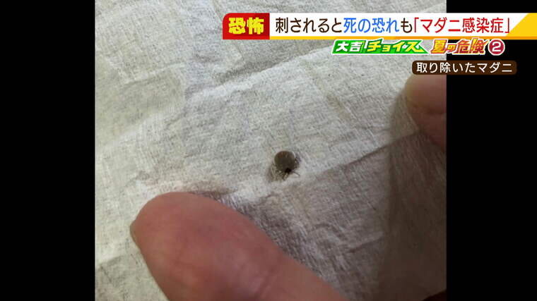動物についたマダニは、約1週間かけて血を吸って徐々に大きくなります。国立感染症研究所によりますと、マダニは様々な感染症を媒介して、中でも「重症熱性血小板減少症候群(SFTS)は発熱や意識障害を引き起こすこともあり、致死率は30%にも上るとされています。