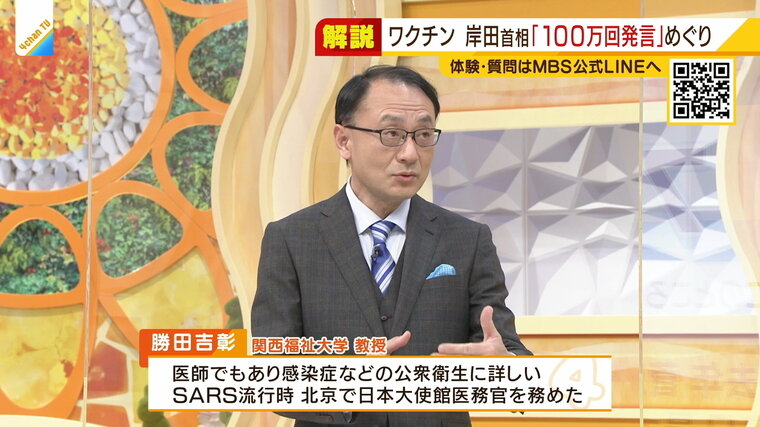 2月11日の毎日放送『よんチャンTV』では、新型コロナウイルスに関して視聴者から寄せられた質問『3回目接種が遅すぎる』『国会のリモート対応』『接触確認アプリCOCOAの現状』などについて取り上げました。スタジオには、医師であり感染症などに詳しい関西福祉大学の勝田吉彰教授に、来ていただきました。