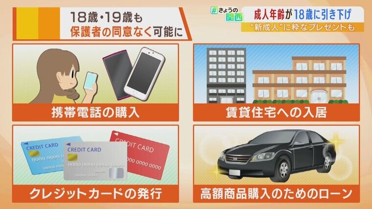 成人年齢引き下げの最大のポイントは18歳・19歳が1人で契約を行えるようになることです。携帯電話の購入・賃貸住宅への入居・クレジットカードの発行に保護者の同意が不要になるのです。車など高額な商品を購入するためにローンを組むこともできます。