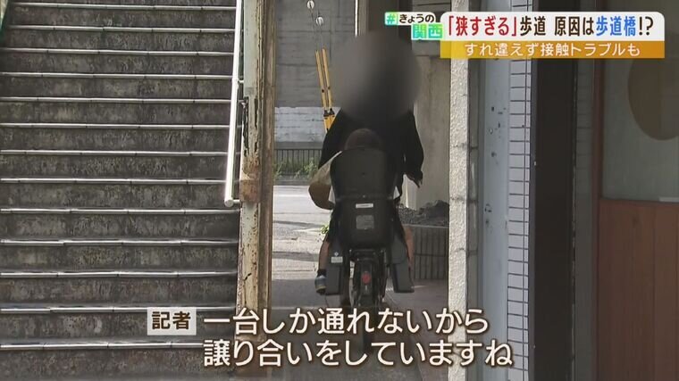 京都市伏見区で10年前から問題となっている“狭すぎる歩道”。その原因は交通安全のための「歩道橋」にあります。