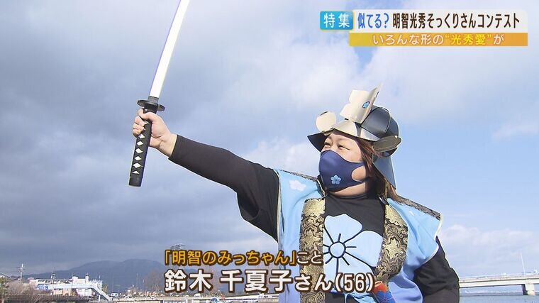 「(Q明智光秀の魅力はどこにある?)『智将』と言われている頭の賢さ。あとは家族思い、奥さん思いで娘思い。(Q光秀を好きな気持ちはほかの応募者に負けない?)そうですね、あっついですね!あの時代にタイムスリップしたらお嫁さんになりたいなと。そっくりさんになりたーい!」