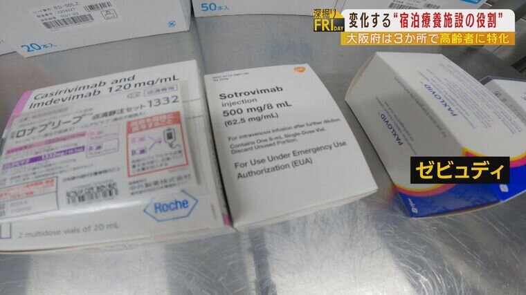 「(Q抗体カクテル療法で使われるロナプリーブですね。隣にあるのはどんな薬?)ゼビュディというお薬です。(Q早い段階で打つことで重症化を防ぐ薬?)そうですね」
