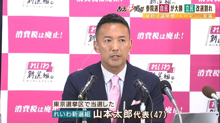 そして3議席を獲得したれいわ新選組。衆院議員を辞職して東京選挙区に立候補した山本太郎代表(47)は滑り込みで当選を果たしました。