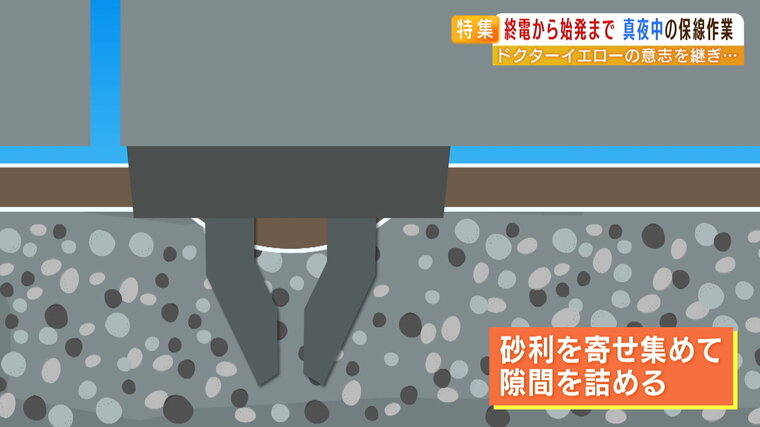 そこで、砂利を寄せ集め隙間を詰めることで、線路をミリ単位で修正していくというのです。