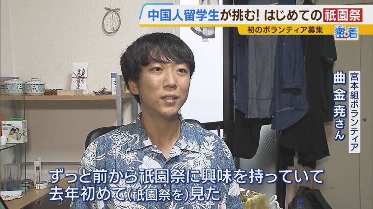 中国人留学生で京都大学に通う曲金尭さん(25)。昨年、初めて見た祇園祭に魅了され、いまや部屋にグッズを飾るほどに。夢にまで見たボランティアに向けて曲さんが始めたのは…。