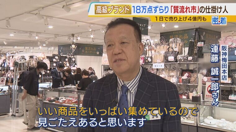 阪神梅田本店で開催されている恒例催事「質流れ品大バザール」。ブランド品の価格も上がる中、中古品のニーズはより高まっていて、今回は18万点が出揃いました。そんな人気の催事を支えているのが、バイヤー歴20年以上の連藤誠一郎さんです。開催までの裏側に迫りました。