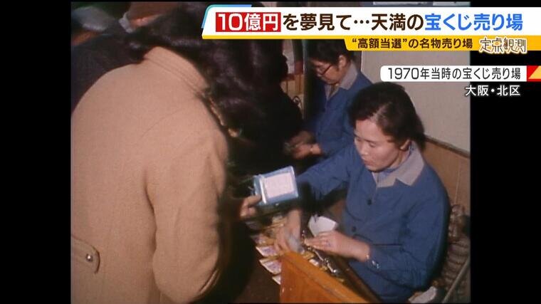 天神橋筋商店街の宝くじ売り場ができたのは前回の大阪万博が行われた1970年。当時、大阪の別の宝くじ売り場を撮影した映像には、長~い行列ができていました。