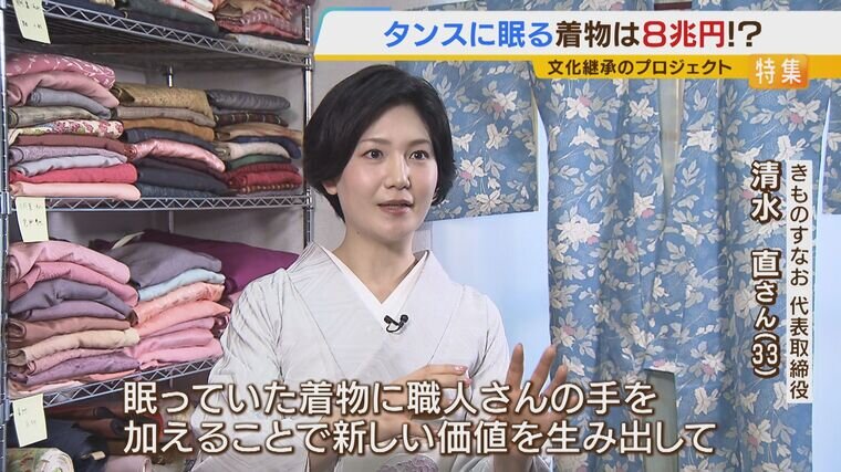 (清水直さん)「眠っていた着物に職人さんの手を加えることで新しい価値を生み出して、本当に欲しい方のところに届けるっていう。ぐるぐる回って、それぞれがどんどん大きくなって、未来永劫着物文化が続いていくっていうプロジェクトなんです」