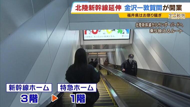 特急「サンダーバード」が敦賀止まりとなるため、大阪方面から金沢へ行くためには敦賀駅で新幹線への乗り換えが必要に。所要時間は平均17分短縮するも料金は1620円高くなります。また、開業前には3階にある新幹線のホームから1階にある特急のホームへの乗り換えがうまくいくかが懸念されていましたが、実際に乗り換えした人からは…