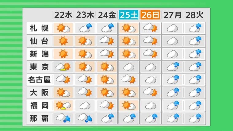 この先、気持ちのいいカラッとした初夏の晴天はだんだんと少なくなっていきます。晴れている地域では、布団干しや梅雨入り前の大掃除などの貴重なチャンスとして、どうぞ日ざしをフル活用してください。