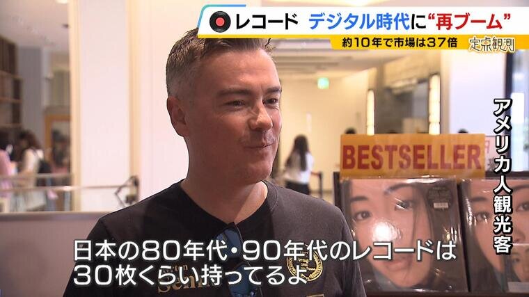 来店客の約2割が外国人観光客。海外でも日本の曲はとても人気なんだそう。アメリカから来たという男性に話を聞きました。