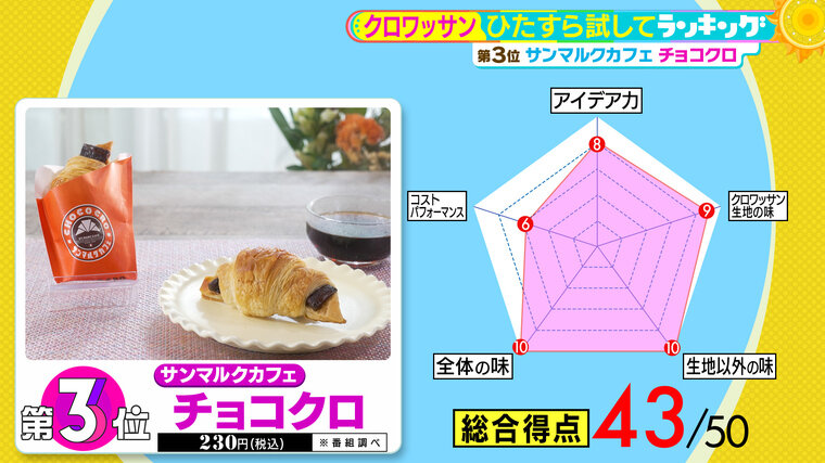 第3位は、サンマルクカフェの『チョコクロ』(税込230円 ※番組調べ)。