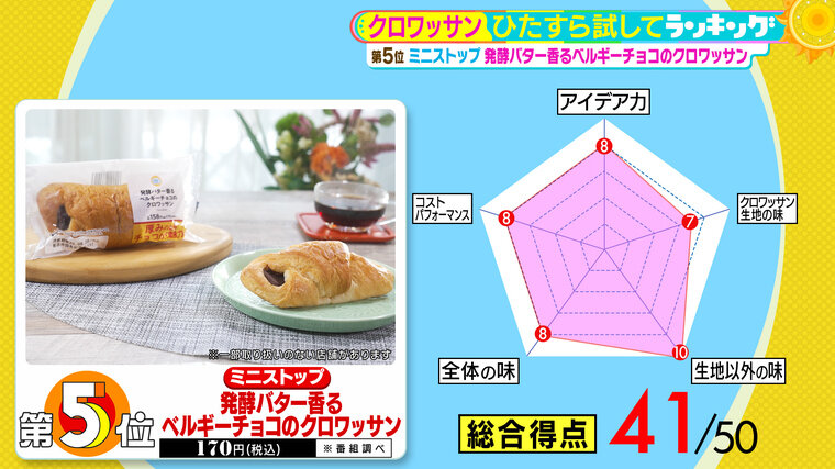 第5位は、ミニストップの『発酵バター香るベルギーチョコのクロワッサン』(税込170円 ※番組調べ ※一部取り扱いのない店舗があります)。