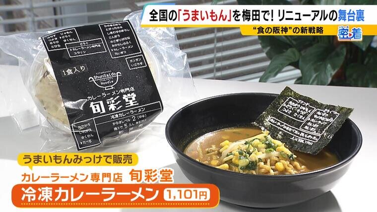 やってきたのは、北新地のカレーラーメン専門店「旬彩堂」。スパイスが効いた複雑なスープに、遊び心あふれる海苔がトッピングされた個性派の一杯は、観光客から飲み会帰りのサラリーマンまで幅広く愛されています。この名物ラーメンを冷凍食品にして、売り場に置こうと考えています。