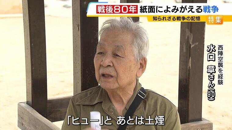 (水口さん)「こういう事実があったと知ってもらうのが第一。その次には、誰かこれを知らない人、若い方たちに知らせてほしい。心配なのは、今後の日本の平和。僕らが死ぬまでは平和やろうと思う、あと3年4年はね。がんばってや。みなさんががんばってくれないとね」