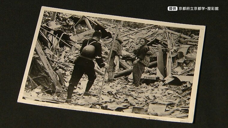 京都市によりますと、このとき、西陣地区の400m四方の範囲に7発もの爆弾が落ち、そのうち5つが爆発。40人余りが死亡。300戸以上の家屋が倒壊し、多くの建物がガレキの山と化しました。