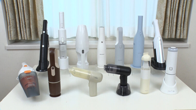 今回は、家電量販店やインターネットで購入できる「1万円以下のハンディタイプの掃除機」13種類を比較。チェックポイントは、①軽さ ②吸引力 ③機能性 ④持続力 ⑤静音性で、各項目10点満点の合計点で総合ランキングを決定した。