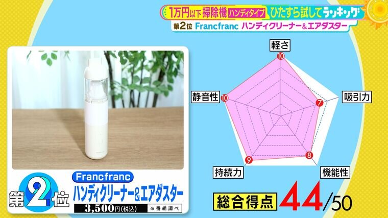 第2位は、Francfrancの『ハンディクリーナー&エアダスター』(税込3,500円 ※番組調べ)。