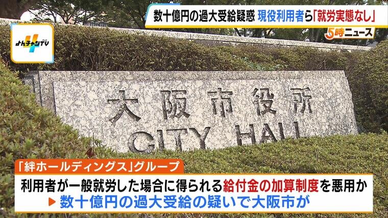 ところがグループでは、利用する障がい者が企業に一般就労した場合に給付金が加算される制度を悪用し、数十億円を過大に受け取った疑いがあり、大阪市の監査を受けています。