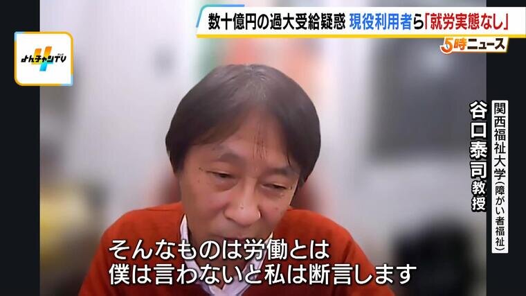 (関西福祉大学(障がい者福祉)・谷口泰司教授)「物を作るんであれ、売るものであれ、それを通じて自分の生きがいなり誇りにつながって、初めて労働って長続きする。そんなものは労働とは言わないと私は断言します」