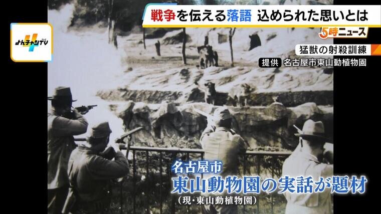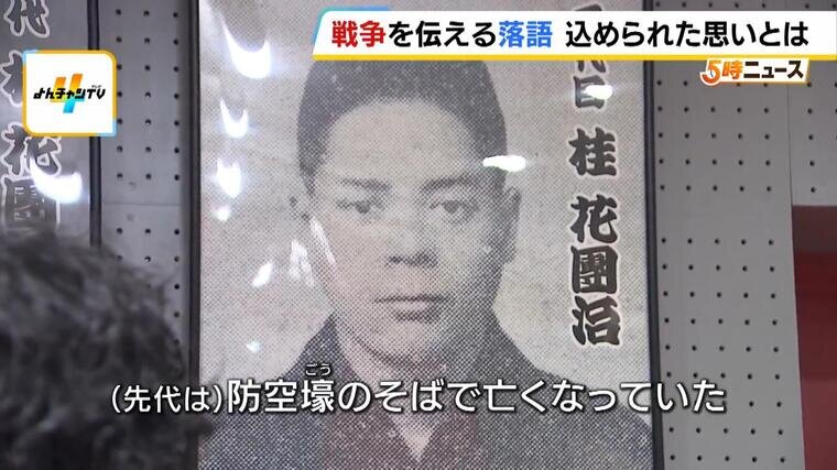 俺は動物を育てるために飼育員になったんや―――太平洋戦争中、動物園で猛獣が殺処分されたことなどが生々しく語られる創作落語「どうぶつえん1945」の一幕です。 演じるのは三代目・桂花團治さん。空襲で亡くなった先代の無念を伝えようと、今日も高座に上がります。伝えたいのは、戦争の悲惨さ。しかし、それだけではない「あること」を表現したいと言います。 落語を通じて戦争を伝える、大阪の落語家の思いとは?