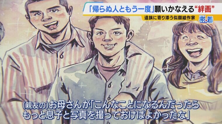 (大村順さん)「(親友の)お母さんが『こんなことになるんだったら、もっと息子と写真を撮っておけばよかったな』という気持ちを知って。絵を見ながらお父さんとお母さんが『なんか息子が生きているみたいだね』って話しているのを見て、もう絆画やろうかなって」