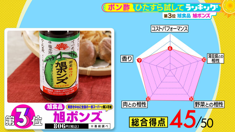 第3位は、旭食品の『旭ポンズ』(税込806円 ※番組調べ)。