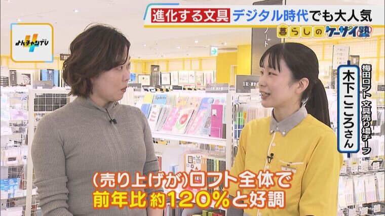 (梅田ロフト・文具売り場チーフ 木下こころさん)「(売り上げが)ロフト全体で前年比約120%と好調です」