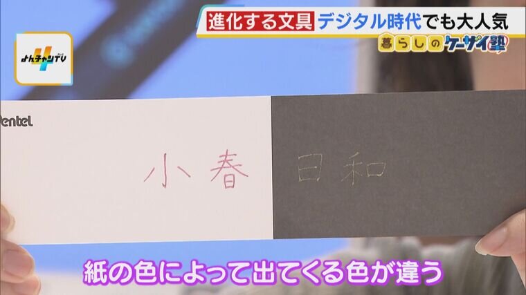 (松本アナ)「同じペンで書きましたが紙の色によって出てくる色が違う」