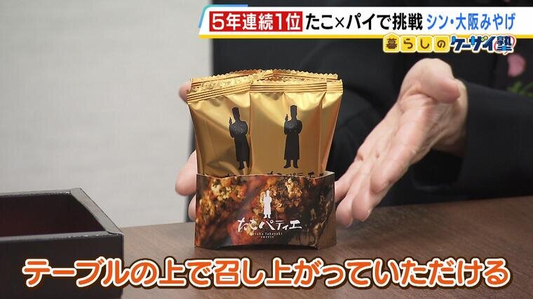 来年で販売開始15年を迎えるたこパティエ。新しい大阪みやげの地位を築いています。