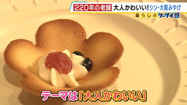 (あみだ池大黒 岡崎一弘さん)「ラングドシャって2枚のタイプで四角いものが多い。差別化を図ることでお客様の目を引くということで、花形のラングドシャにしました」