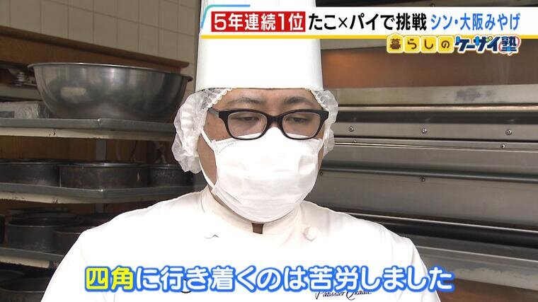 (岡田正二郎さん)「(Qたこパティエを開発する上で大変だったことは?)たこ焼きのお菓子というテーマしかなくて、ゴールが見えていない状態で商品を開発を進めますので、何をすればわからない状態」