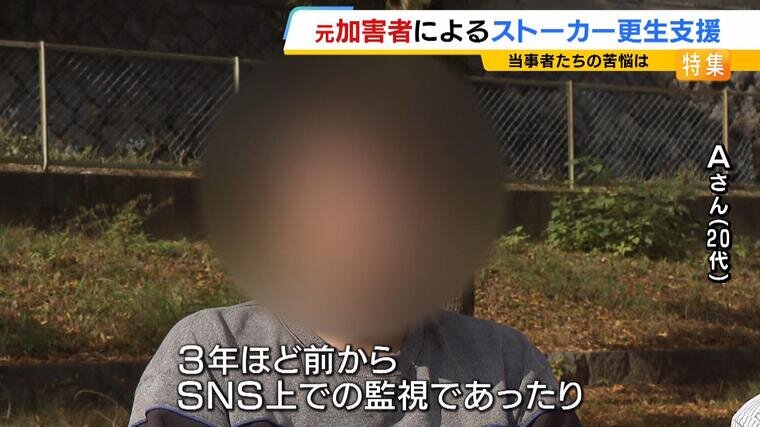 (20代男性 Aさん)「3年ほど前からSNS上での監視であったり、その女性が働くバイト先に待ち伏せをしに行ったり。女性が好きだからというので一目見たい」