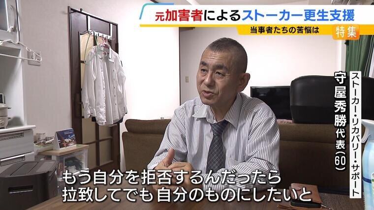 拉致してでも自分のものに――― かつて職場の同僚にストーカー行為を行い、逮捕された経験を持つ守屋秀勝さん(60)。元加害者だからこそ出来ることがあると考え、元ストーカーの更生支援を行う団体の代表を務めています。 SNS上での監視、バイト先での待ち伏せ、嫌がらせの手紙…日々寄せられる元加害者からの相談。時に厳しく、時に寄り添い、地道な支援を続けています。 ストーカー加害者が更生する上で、何が大切なのか?当事者たちの苦悩、支援者の声を取材しました。