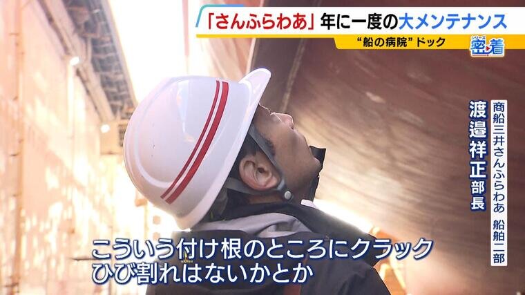 (商船三井さんふらわあ・船舶二部 渡邉祥正部長)「こういう付け根のところにクラック(ひび割れ)はないかとか、点検を目視でやっていきます」