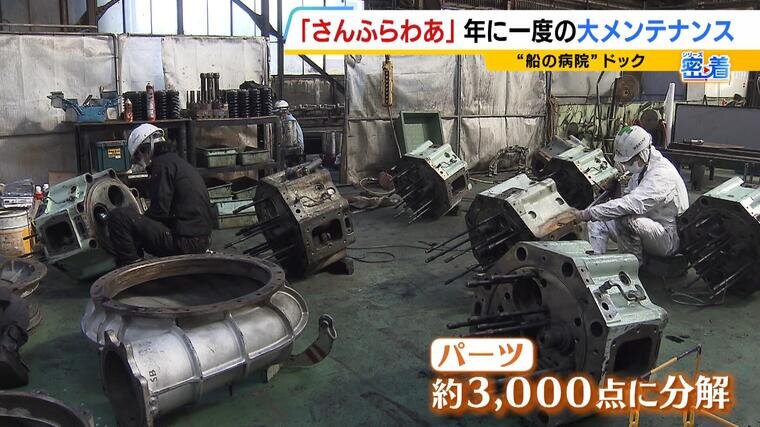 人気フェリー「さんふらわあ」総勢100人超で挑む"年に一度"の大規模メンテナンス "船の病院"ドックで陸揚げ...エンジンは約3000パーツに分解!?【密着】