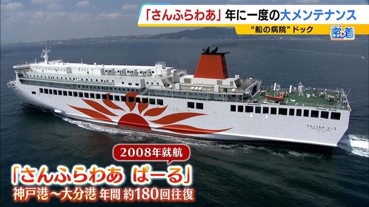 関西-九州を行き来するフェリー「さんふらわあ ぱーる」。実は年に一度、陸揚げをして、船底からエンジンにいたるまで大規模なメンテナンスを実施しています。そこでは一体どんな作業が行われているのか?密着取材しました。