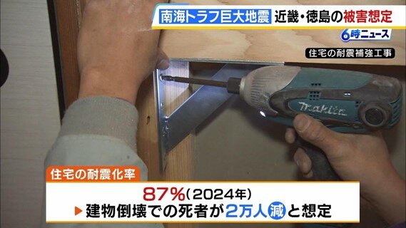 実は、前回から3万4000人減っていて、主な理由は「建物倒壊での死者」が2万人減ったことです。住宅の耐震化率が全国平均で87%と、2008年の79%から上がったことが背景にあります。