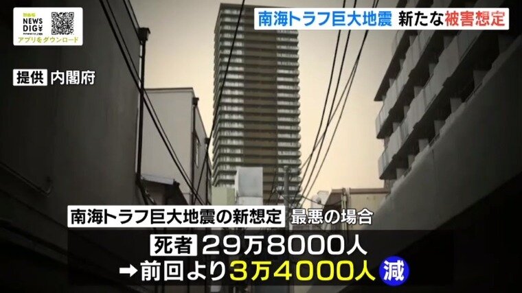 南海トラフ地震の被害想定 死者は前回より3万4000人減 しかし東日本大震災の18倍