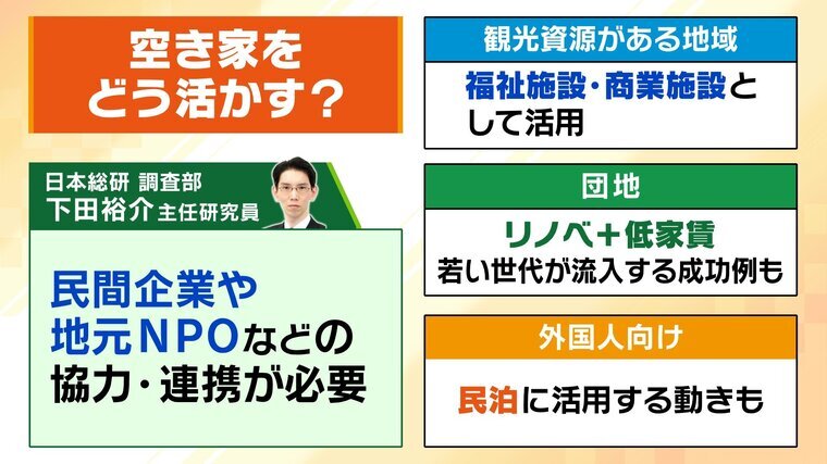 日本総研の下田氏によると、空き家活用には「民間企業や地元NPOなどとの協力・連携が必要」だということです。
