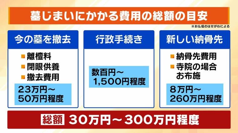 【家族で話そう"墓じまい"】離壇料だけで300万円!?書類の取得が大変!?お墓はつくるよりしまう方が大変... 正月モメずに話し合うには?手順・費用など徹底解説