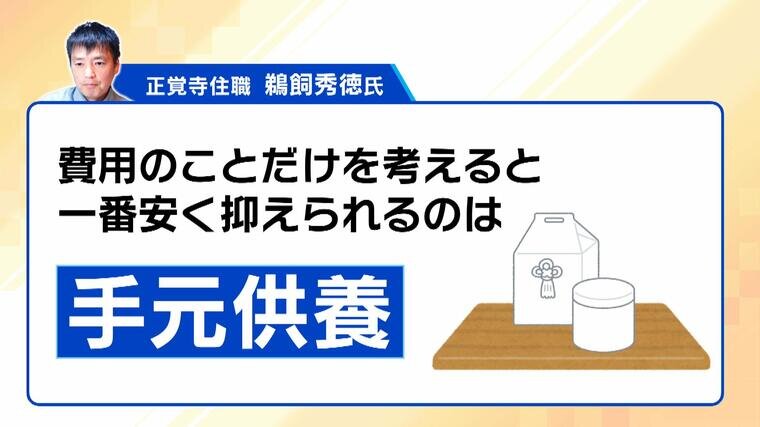 「費用のことだけ考えると、一番安く抑えられるのは手元供養」と鵜飼氏は指摘します。日本では、お骨を家に置くことは“仮置き”として認められていて、一番コストがかからないと言います。一方で、遺骨をどんどん入れていけるため、「家族で墓を持っておくことが、結局安くつく場合もある」という考え方も。