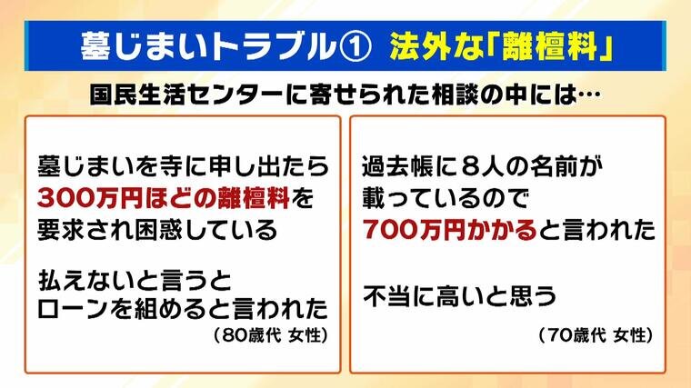 (80代女性)「墓じまいを寺に申し出たら、約300万円の離檀料を要求された。払えないと言うと、ローンを組めると言われた」