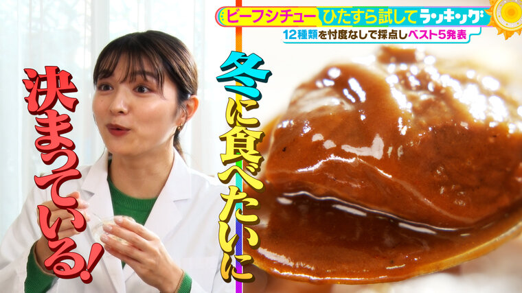 世の中のありとあらゆるものを忖度なしに検証し、独自ランキングを紹介するMBS「サタプラ」の『ひたすら試してランキング』。MBS清水麻椰アナウンサーが「ビーフシチュー」を徹底調査。ひたすら試してわかった、“サタプラ的おすすめベスト5”を発表した。