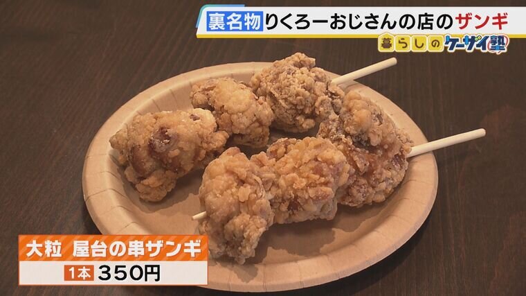 大きな「ザンギ」がドドンと3個刺さった、その名も「大粒 屋台の串ザンギ」。