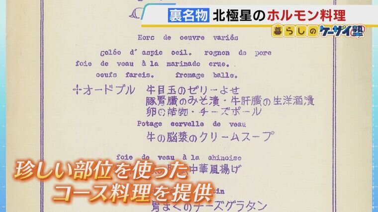 (北橋茂登志さん)「(洋食北極星のオープンが)創業100周年だった。前にやっていたホルモン料理を復活させてもおもしろいかなと思って始めた」