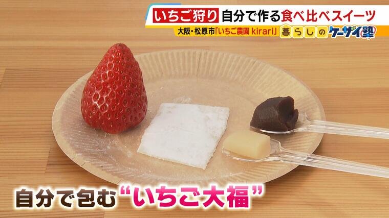 (上田アナ)「いちごが違うだけでこんなに味違う。かおり野のほうが、さっぱりとしたいちご大福。同じいちごなのに、全然違う味わいで食べ比べできるの最高ですね!」