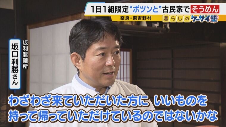 (坂口利勝さん)「国産小麦粉のもちっとした食感もきちんと出るように手延べしている」